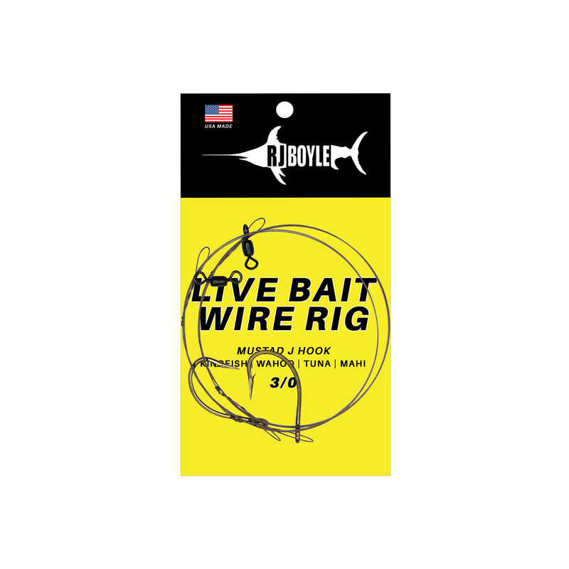 2 per pack. Mustad J hook with wire for kingfish, wahoo, tuna and mahi.